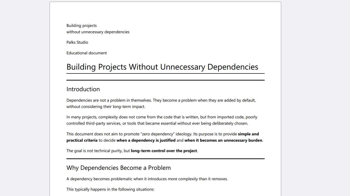 Dependencies are not a problem by themselves. They become a problem when they are added by default, out of habit, or without considering their long-term impact.