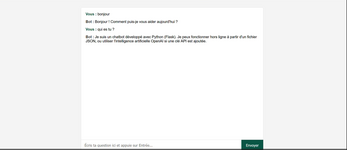 🇬🇧⚠️ This template is only available in French. For a complete English version, please check Flask Chatbot 2.0 – Full English Version.