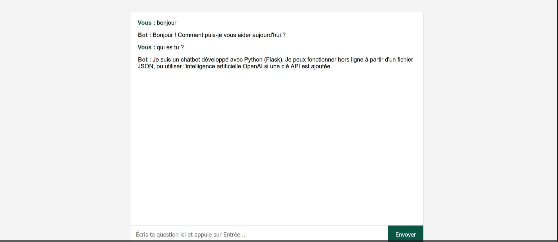 Faut-il une clé OpenAI pour utiliser le chatbot ? Non. Il fonctionne hors ligne grâce au fichier JSON fourni. OpenAI est optionnel.